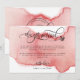 Comunique familiares e amigos a grande notícia do seu casamento com este elegante Cartão de Anúncio "Nos Casamos". Sinta-se à vontade para adicionar sua própria mensagem, a nossa é apenas um exemplo. Design simples e moderno com mancha de aquarela em rosa dourado e detalhes de caligrafia manuscrita. Verso do cartão com logotipo decorativo elegante com os nomes completos da noiva e do noivo sobre graciosa mancha de aquarela em rosa e dourado.