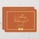 Terracotta, ensaio de casamento de ouro e convite de janto. Design e excelente elegantes para casais que usam terracota como cor de casamento. Personalize o texto na parte frontal e traseira do convite. Terracotta e cores douradas. Parte da coleção de design de casamento "Dois Corações". Use a modelo para criar seu próprio convite para janto de ensaio de casamento e ouro.