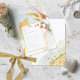 Esta elegante coleção de casamento usa uma paleta colorida impressionante, incluindo flocos de ouro, laranja queimada e verde-sábio, para criar papelaria e material de festa para o seu dia especial. Os florais de aquarelas e os traçados de tinta cintilantes proporcionam um fundo de captura de olhos. Script manuscrito emparelhado com fonte serif clássica empresta um toque moderno. O convite 'Janto de ensaio' do casamento mostrado aqui oferece uma modelo para adicionar facilmente seus próprios detalhes de evento. Procure ID954 para ver outras peças e opções de cor para este conjunto.