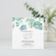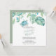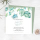 Este convite para jantar de ensaio apresenta seus nomes em uma tipografia de letra manuscrita estilosa com detalhes do evento em uma fonte clássica serifada em cinza carvão sobre um fundo branco crocante com uma borda superior com minha tartaruga marinha original em aquarela e folhas de palmeira monstera de folhagem tropical em tons de azul, verde e turquesa. O cartão de convite reverte para uma cor verde-sage tropical complementar. Uma escolha botânica, porém elegante, para casamentos casuais de praia e jantares de ensaio à beira-mar. Para ver meu conjunto completo de papelaria de casamento, visite DoTellABelle no Zazzle.