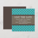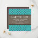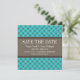 Trendy and chic Rico Lattice Salve os Anúncios de Data com um na moda e um padrão estudado de diamante sobre um fundo de turquesa vibrante com duas tonalidades de borda castanha. Este elegante convite para a data é perfeito para anunciar seu casamento moderno. Fácil de personalizar, basta adicionar os detalhes do casamento nos campos de texto fornecidos. Clique em "Personalizar" para encontrar mais opções de personalização.