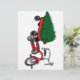 Entrega de árvore de Natal em um pequeno carrinho vermelho, estilo triciclo. Presente retrô muito fofo.