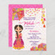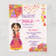 Mehndi linda noiva de hena indiana com guarda-chuvas cor-de-rosa e amarelo e orçamento de bruxelas Convite para download instantâneo de modelo.
