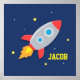 Personalize esta poster de decoração de parede com este foguete a explodir numa galáxia de estrelas sobre o fundo azul escuro. Perfeito para o pequeno astronauta quando ele caminha para uma aventura espacial em seu quarto!