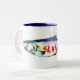 Caneca que caracteriza um envoltório em torno do design original Salmon da aguarela do amigo por Carrie Axelson