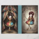 Use this illustration to decorate journal pages, handmade cards, creative paper crafts, or as decorative art for drawers, cabinets, trays, and furniture pieces. The design adds a magical, slightly mysterious vintage circus atmosphere to any DIY project.
