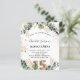 Para uma Quinceañera, 15 festa de aniversário. Um fundo branco decorado com verde de eucalipto e folhas de ouro. Pontos de brilho falsos do ouro. Personalize e adicione seus nomes e detalhes do casamento. Letras pretas e ouros coloridas. O número 15 é escrito com a fonte do estilo do balão. Traseira: fundo branco e pontos brilhantes de falso ouro.