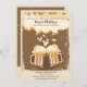 Um convite com tema de cerveja e charme retrô. Ele apresenta duas canecas de cerveja espumante contra um fundo marrom e bege desgastado. Perfeito para celebrações de aniversário, despedidas de solteiro, celebrações de promoção, festas de despedida e muito mais.