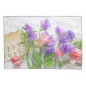 Flores pastéis de primavera delicadas em bonito tecido de ilhotas com palha rebitada com a menção "ervilhas doces" em papel velho