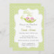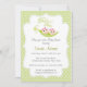Convite do chá de fraldas com ervilhas em um design do vagem para meninas gêmeas. O fundo é polkadot verde bonito.