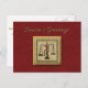 Cartaz de feriado para advogado ou escritório de advocacia com escalas de justiça em ornamentado, em vermelho.
