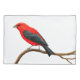 O design original das belas artes de um escarlate de Tanager masculino pelo artista aviário Carolyn McFann do estúdio de TPC imprimiu em sua escolha de uma qualidade e de uma fronha de almofada brandamente padrão ou enorme.