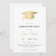 Hora de celebrar o novo boné e formando vestido com um convite de festa de formatura personalizável. Edite seu convite de festas de formando com todos os detalhes da festa e da cerimônia de graduação. Este convite de festas editável define o tom para a sua celebração de graduação. A coleção VEDA apresenta um fundo branco brilhante e um boné de formatura de ouro metálico (do qual você pode editar a cor), combinados com um emparelhamento de uma fonte sans moderna com o nome do formando em script manuscrito. O convite para festas de formatura inclui campos editáveis para o nome do formando, data, a cerimônia de graduação e a hora e local da festa, e informações de rsvp. formando universitário, formandos, festa de formando, convite para graduação, convite para formatura, convite para formandos, formatura escolar