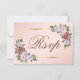 Placa rsvp floral elegante e de casamento dourado com opções de refeições com rosas rosa pinceladas e verde em volta de uma armação dourada sobre um fundo de gradiente de blush. Itens correspondentes disponíveis.