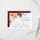Complete seu conjunto com este cartão de RSVP de casamento coordenado, apresentando um canto floral em aquarela em tons de borgonha, rosa e outono quente. Inclui espaço para nomes, resposta de presença e uma seção fácil de seleção de refeição. Um layout limpo e moderno mantém tudo legível, combinando com um tema de casamento floral de outono romântico.