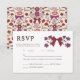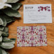 Cartão RSVP de casamento russo e coquete com ilustração desenhada à mão de arcos magenta e flores. O cartão também inclui opções de refeição para os convidados a selecionar.