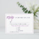 Púrpura Flor Floral Wedding Menu Choice Rsvp. Cartão Rsvp de casamento com uma opção de menu para um casamento. Primavera de púrpura Floral ou cartão de escolha de cardápio de verão - mostra uma foto de flores roxas e um roteiro branco moderno. Este cartão de resposta do casamento pergunta aos seus convidados qual refeição eles gostariam na sua recepção e o número de menus. Você pode alterar os detalhes da placa para ajustado de sua necessidade. Excelente para um casamento rústico, floral e country.