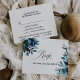 Este marinho celeste azul de cardápio floral escolhido pelo rsvp é perfeito para um casamento de destino. O design apresenta marinhos, azuis e índios lindamente desenhados à mão, bem dispostos em um buquê encantador.