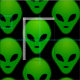 Impressões de cabeça de alienígena verde no tecido de fundo preto. Você pode escolher sua própria cor de fundo