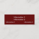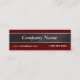 Pnha seu nome da empresa em letras brancas corajosas sobre a bandeira do olhar 3d como mostrado, ou mude facilmente a cor e/ou o estilo de pia batismal, e a outra informação na parte dianteira e na parte de trás desta planície, mas o na moda e cartão de visita de vista profissional. O fundo vermelho atraente pode igualmente facilmente ser mudado a toda a cor. Apenas clique sobre "personalizam-no" e então "edite" e "fundo" para mudar então a cor. , Mas um cartão muito elegante, relativo à promoção liso e simples para algum negócio! É mostrado o popular, menor, cartão de visita do tamanho do perfil. Outros dois tamanhos estão disponíveis.