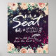 Escolha Um Assento Não Um Poster De Sinal De Casamento Lateral - Script Chic Moderno Com Flor De Aquarela Elegante Em Luz De Fundo Das Luzes Sparkle Roxo.