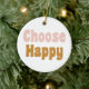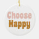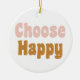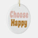 'Escolher Feliz' - Letra Retroativa em Ornamento de Feriado Rosa e Dourado