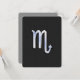 Um cromo prateado como Scorpio zodiac símbolo em um decor de impressão de textura de cobra preto de carvão. Um design moderno urbano para uma ideia personalizada de presente de aniversário de excelente. Use o link "Perguntar a este Designer" para entrar em contato conosco com suas solicitações especiais de design ou para obter assistência com suas necessidades de personalização.