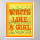 Criada em homenagem ao mês de história das mulheres, Write Like a Girl apresenta uma lista alfabética abreviada de nomes de famosas autoras como evidência de que poderíamos escrever como uma garota mais frequentemente. Um presente excelente para escritores feministas, leitores e amigos literários em todos os lugares. *Escrever como uma fonte de uma garota é o Chunk do eleagueofmove abletype.com*
