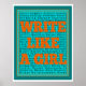 Criada em homenagem ao mês de história das mulheres, Write Like a Girl apresenta uma lista alfabética abreviada de nomes de famosas autoras como evidência de que poderíamos escrever como uma garota mais frequentemente. Um presente excelente para escritores feministas, leitores e amigos literários em todos os lugares. *Escrever como uma fonte de uma garota é o Chunk do eleagueofmove abletype.com*