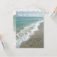 "Eu Te Amo" escrito na areia em uma praia com areia marrom, ondas brancas e água azul clara. Perfeito para o seu evento romântico de praia, festa de noivado, chá de noiva ou cerimônia de casamento informal. Também disponível com outras escritas, incluindo Obrigado, Salve a Data, RSPV e Você é Convidado.