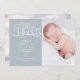 Escrito rústico decorativo "alô" com florescimento e uma ilustração do estêncil da borboleta associada a nome e data em uma fonte elegante. Muito fácil de personalizar com suas informações e fotos para o anúncio elegante rústico, e você pode mudar a cor do fundo além das opções existentes de pincel empoeirado e azul-bebê.