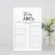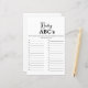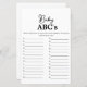 Que item de bebê começa com cada carta? A primeira pessoa a completar a lista ganha! Um jogo de chá de fraldas alegre com uma narrativa básica.