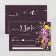 Monograma Rsvp de casamento floral roxo Elegante com flores pintadas manualmente bonito em roxo, amarelo, laranja e verde. Perfeito para o outono, casamentos elegantes no inverno em roxo escuro.