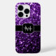 O brilho brilhante brilhante do fio púrpura esmaga a capas de iphone Monograma de Cascata. Personalize com seu nome e nome inicial. Lindos brilhos brilhantes roxos roxos e brilhantes. Foto de faíscas roxas, não de reluz real!