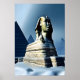 Esfinge na neve com pirâmide ao fundo. Esta é uma arte gerada por IA.