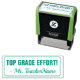 Este design de carimbo divertido apresenta a mensagem de elogio "TOP GRADE EFFORT!" e o nome de um educador personalizado. Ele poderia ser usado por um professor de escola, educador ou orientador ao marcar trabalhos, para indicar que um aluno fez bem.