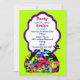 Um convite de aniversário de crianças fofo. Uma gangue de criaturas monstruosas que olham para a alienígena e se juntam a um tema espacial. Planetas, uma espaçonave e uma lua em segundo plano se posicionam contra um céu noturno negro com estrelas. Cores Brilhantes incluindo rosa quente, verde limão, azul claro e muitas outras. Defina uma cor vívida do verde limão. Personalize/personalize com os detalhes de seu partido dentro um quadro de rico com uma borda roxa.