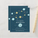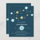 Design apresenta uma imagem aquarela da órbita dos planetas em cores pastel suaves, azul claro e ouro, estrelas rosa claro e azul claro sobre o fundo azul marinho. O verso deste convite para chás de fraldas é marinho azul com uma imagem de cor d'água fofa do espaço. Personalize este convite bonito com os detalhes do evento. Observe que os envelopes NÃO estão incluídos neste design. Se precisar de envelopes, verifique nossa coleção ou adquira-os separadamente do mercado.