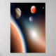 Um poster com muitos planetas de gás coloridos no espaço. Esta é uma arte gerada por IA.
