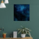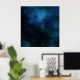 Um poster de espaço profundo mostrando uma galáxia leitosa no céu noturno.