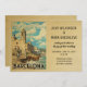 Vintage Barcelona Wedding Invances com uma bela igreja costeira nesta cena buscando espanhol. Este legal design do século médio é a maneira perfeita de reunir convidados para o seu casamento de destino da Espanha de Barcelona.