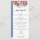 Aprecie seus hóspedes com este cartão de menu refinado em espanhol. Também disponível em inglês. Design coordenando nossos convites para eventos e Casamento Feliz e Azul. Separe o design que apresenta na parte superior uma disposição floral única e azul e, na parte inferior, o(s) seu(s) nome(s) e data. Escreva a tipografia de Script na parte traseira e frontal com a mensagem de obrigado para os convidados. De volta em uma tonalidade azul empoeirada romântica. Parte da nossa coleção de casamento e eventos "Feliz Floral".