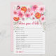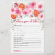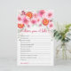 Melhore seu chá de fraldas com nossos charmosos cartões de jogos "Desejos pelo Bebê", projetados para complementar perfeitamente o tema de sua celebração. Apresentando um elegante design de rosas, peônias e dahlias cor-de-rosa, entrelaçadas com folhagem de eucalipto verde macio e delicadas comprimentos cor-de-rosa, estas cartas adicionam um toque de beleza ao seu evento. Fatias vibrantes de laranja sanguínea com centros cor-de-rosa e laranja são delicadamente incorporadas no tom floral, acrescentando um talento único e delicioso. Convidados podem escrever desejos e conselhos incríveis para os novos pais que vão estar nesses cartões de jogos espanhóis, criando pausas queridas para o futuro do bebê. Perfeito para qualquer chá de fraldas, almoço, almoço ou borrifo, estas cartas encorajam os hóspedes a compartilhar suas bênçãos de uma forma atenciosa e significativa. Torne o seu chá de fraldas memorável com estes cartões de jogos "Desejos por Bebê", em espanhol, lindamente projetados, que refletem a alegria e a antecipação de acolher seu novo membro da família.