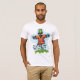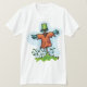Não se assuste é só um espantalho. Eles são projetados para assustar os pássaros. Este espantalho tem uma parte superior laranja ligada e parece estar vestindo um balde em sua cabeça. Os braços estão esticados e estão em algum relva verde. Este design de espantalho parece excelente nesta camiseta masculina. Perfeito para si mesmo ou como presente