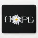 Este mousepad preto customizável tem a esperança da palavra nele, com uma flor branca e amarela da margarida de Shasta no lugar do "O" na esperança. Adicione seu próprio texto se você gosta.