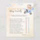 Adicione diversão e risos ao seu chá com este jogo de chá de fraldas de Espera Rápida: Quem conhece Mamães ou Pais? Apresentando um doce design de aquarela de um ursinho voando um avião através das nuvens, este jogo de chá de fraldas neutro em termos de gênero corresponde perfeitamente ao resto da coleção de Espera Rápida. Fácil de personalizar e impressão — uma atividade memorável para convidados.