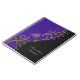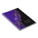 A música personalizada nota o caderno celta do coração. Roxo e notas musicais do ouro que penduram como luzes de Natal no roxo drapejado contra um fundo preto, com um roxo e um nó celta do coração do ouro. Os nós celtas são uma forma de arte celta tradicional, caracterizada notàvel não tendo nenhum começo e nenhuma extremidade, que simbolizam o amor eterno e o ciclo interminável da vida. Transformaram-se um símbolo favorito em muitas culturas e civilizações em todo o mundo e com muitos médicos da mágica ou misticismo hoje. O nó celta do coração é um nó infinito na forma de um coração e representa o amor romântico eterno e infinito.