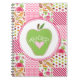 Um caderno para os professores que caracterizam uma ilustração de uma maçã verde decorada com um coração cor-de-rosa e um texto branco "PROFESSOR." O fundo é retalhos femininos um design inspirado que consiste em padrões das bolinhas, do paisley, das listras, do ziguezague, os florais, e do guingão.