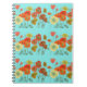 Espiral Caderno Aqua Flores Florais Papoula Laranja