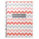 O jornal espiral do planejador do casamento com ziguezagues retros e ocasionais de rosa, do cinza de carvão vegetal e brancos alaranjados corais elegantes da viga listra o teste padrão, com texto customizável para adicionar sua própria mensagem. Aperfeiçoe para os planos do casamento e os detalhes de organização, um grande presente para que a noiva seja.